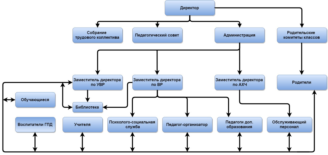 В соответствии со статьей 26 Федерального Закона № 273-ФЗ управление школой осуществляется на основе сочетания принципов единоначалия и коллегиальности.